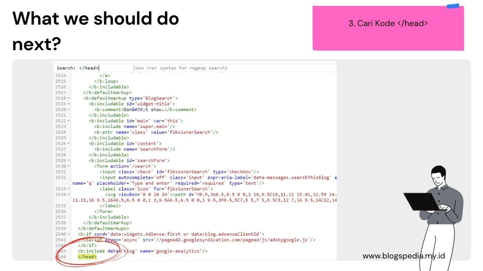 • Cari kode </head> lalu copas kode ini di atas </head>;